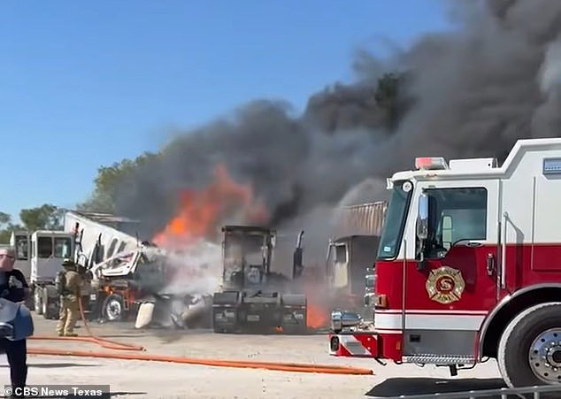 Un avión se estrelló cerca del aeródromo Hicks en Fort Worth, incendiando camiones de 18 ruedas y enviando espesas columnas de humo al cielo.