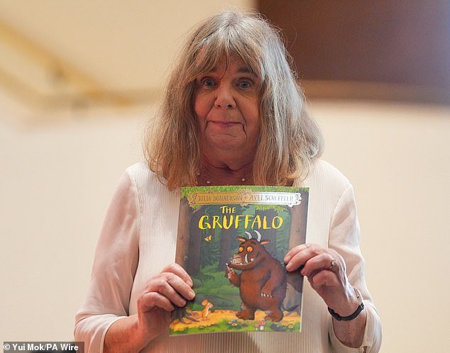 La autora Julia Donaldson leyó su querida serie de libros en un evento en la Biblioteca Británica de Londres antes de la revelación de la nueva Gruffalo Granny del artista Axel Scheffler.