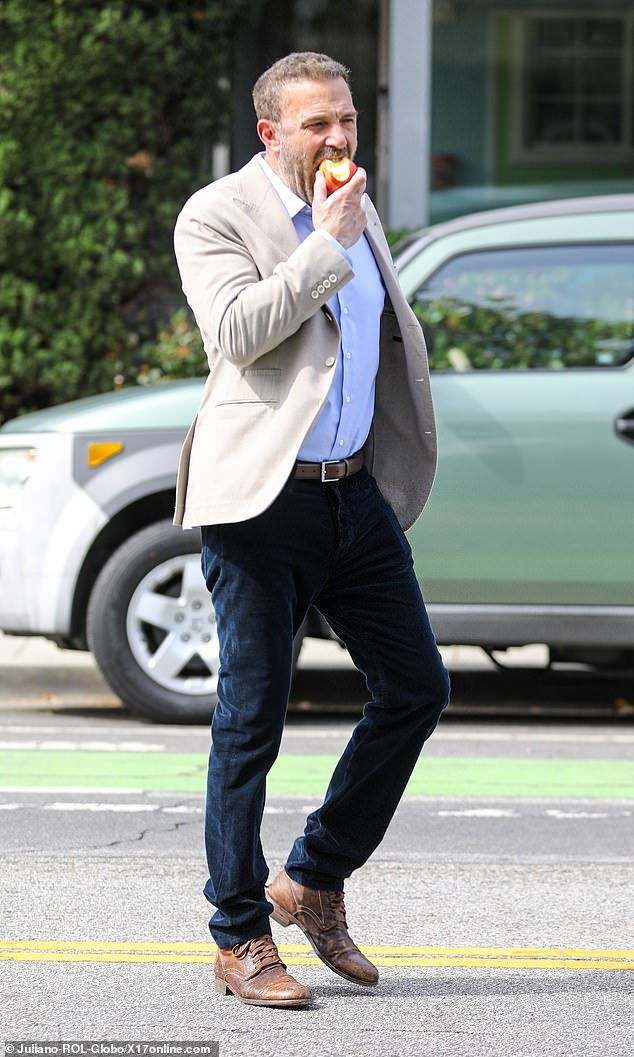 Ben Affleck fue visto masticando otra manzana en público mientras hacía recados en Los Ángeles el martes por la tarde.