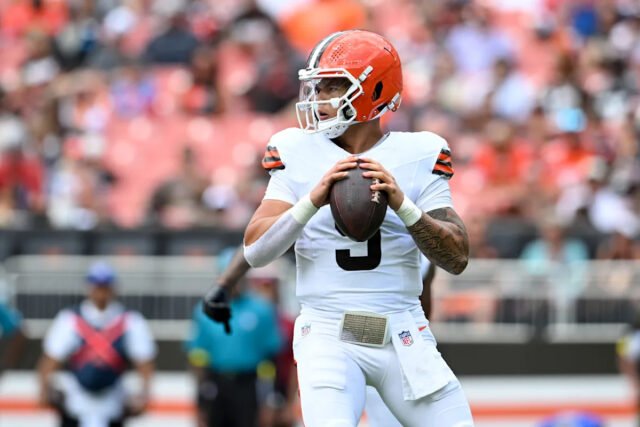 Flacco se unió a los Browns esta última temporada y ganó el puesto de partida después de una batalla de posición muy pública durante todo el campo de entrenamiento. Sin embargo, llevó al equipo al comienzo de 1-3, y la ofensiva de los Browns experimentó dificultades considerablemente bajo su vigilancia. Flacco logró solo 16 de 34 para 184 yardas con dos intercepciones durante la derrota de 34-10 la semana pasada contra los Detroit Lions. Solo tiene dos intercepciones afectadas y seis hasta ahora en cuatro juegos esta temporada y contiene solo 27.0 QBR, que es mejor que solo los Titanes de Tennessee.