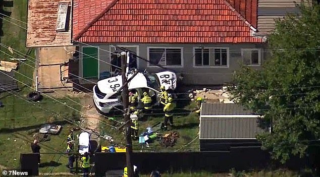 Se entiende que el automóvil se estrelló contra el costado de la propiedad en Bungarribee Road en Blacktown, en el oeste de Sydney, alrededor de las 3 de la tarde del martes.