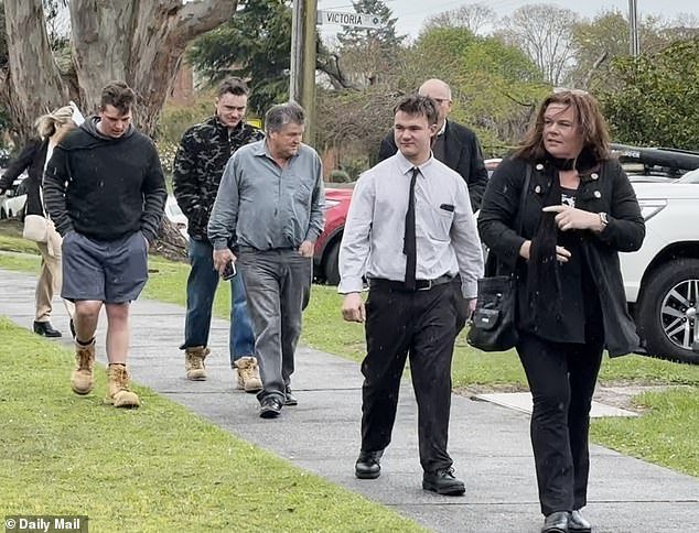 Tyson Michael Delbridge (segundo a la derecha) estaba sonriendo cuando entró en el juz lo jueves con sus padres y seguidores