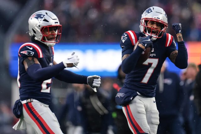 El esquinero de los Patriots, Carlton Davis, realizó una de las jugadas de playoffs del domingo con una intercepción del mariscal de campo de los Texans, CJ Stroud.