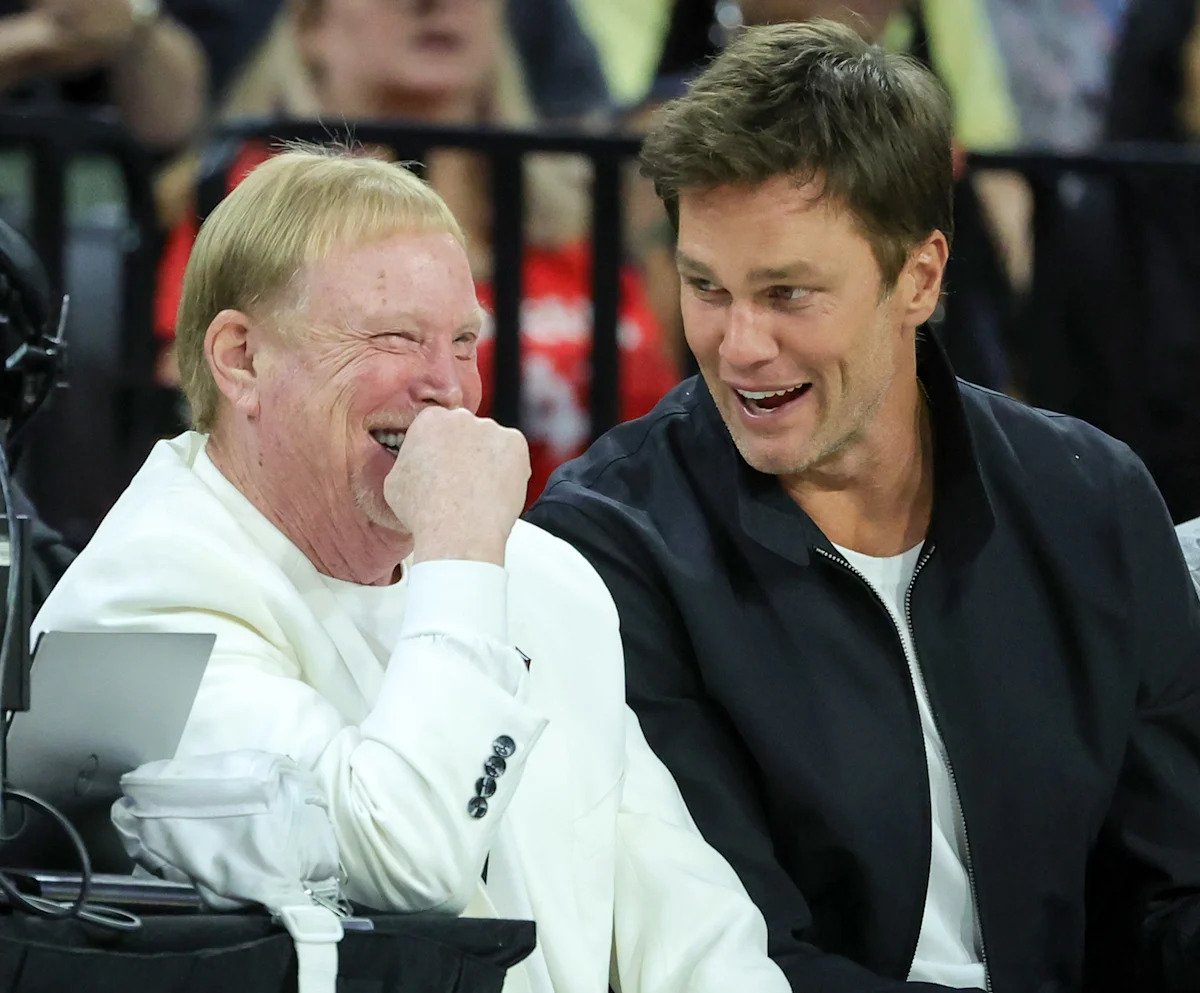 El propietario de Los Vegas Raiders, Mark Davis (izquierda), tendrá al propietario limitado Tom Brady (derecha) como parte de la búsqueda de entrenador en jefe del equipo. (Foto de Ethan Miller/Getty Images)