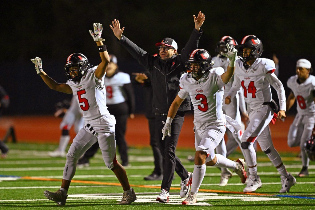 El juego fue considerablemente menos desigual que las dos primeras victorias de liga de Clayton Valley sobre Las Lomas (63-7) y Miramonte (53-14). Los Ugly Eagles alguna vez fueron considerados una “anomalía competitiva” y enviados a jugar en la misma división que De La Salle. Regresaron a la liga el año pasado y empataron a Acalanes en el primer lugar, y ahora se enfrentarán a los Dons en la noche de Halloween con el título de liga en juego una vez más.