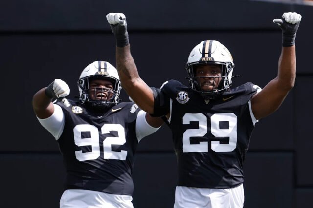 Jaylon Stone, Miles Capers y el resto de los Commodores de Vanderbilt irán a Tuscaloosa para un partido de la Semana 6 de la NCAA contra Alabama Crimson Tide. Aquí está cómo mirar. (Matthew Maxey / Icon Sportswire a través de Getty Images)
