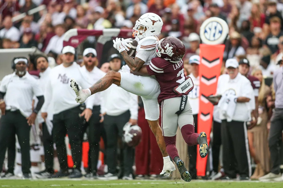 Matthew Caldwell encontró a Emmett Mosley V para un pase de touchdown en la victoria 45-38 sobre Mississippi State. Caldwell estaba en el juego en el primer tiempo extra después de que Arch Manning se golpeara la cabeza contra el césped mientras corría para un primer intento en la primera jugada del período extra del No. 22 Texas.