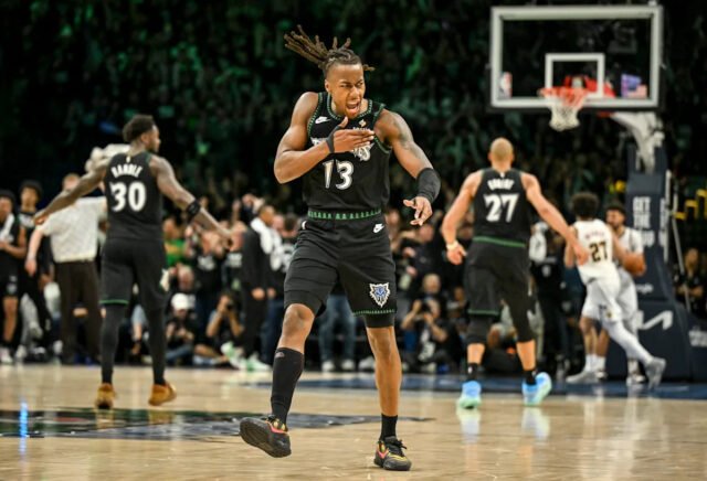 Una cosa fue que en el Juego 3 fuera capaz de encontrar un nivel de agresión, mezclando ataques para castigar a la defensa de los Denver Nuggets. Otra cosa es este partido donde, en ausencia de Donte DiVincenzo y Anthony Edwards (oraciones), necesario cada uno de sus tiros: 13 de 17 desde el campo, 5 de 5 desde 3, 12 de 12 desde la línea, un momento increíble en su carrera. Su mando y control impulsó el ritmo de Minnesota, atacando el espacio del drop de Nikola Jokić. Si fuera 1 contra 1, entraría en la pintura. Si lo interrumpieras, lo dejaría pasar. Fueron las dominadas, fueron los flotadores, fueron las pinceladas de pintura, pero fue la comodidad total que mostró. Veintisiete de sus 43 puntos llegaron en la segunda mitad, cuando Donté y Ant quedaron descartados.