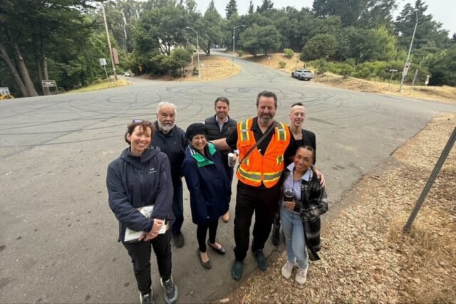 El enfoque de la ciudad en términos de quejas es a menudo “la rueda crujiente obtiene grasa”. Josh Rowan, director de transporte de la Ciudad de Oakland, realizó una visita al sitio con vecinos hace varios meses y discutió medidas de prevención, como desacelaciones y triángulos de intersección. El vecino Charlie Young dice que Rowan podría ver la naturaleza caótica de la intersección.