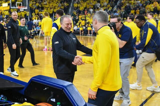 Pero si alguien puede llegar a Michigan, probablemente sean los Spartans. Por supuesto, han perdido dos veces ante su rival local esta temporada. El grupo de Tom Izzo terminó el año ganando cinco de sus últimos seis juegos, incluido en Purdue. Y recibieron el doble descanso en el torneo de conferencia y están en el lado opuesto del grupo en tercer lugar, por lo que su mayor amenaza en ese lado es Nebraska, segundo cabeza de serie. Es, al menos en el papel, un camino más fácil hacia el juego por el título de los Diez Grandes. Y si los Spartans pueden hacer eso, sería muy probable que conserven el puesto número 2 en el torneo de la NCAA.