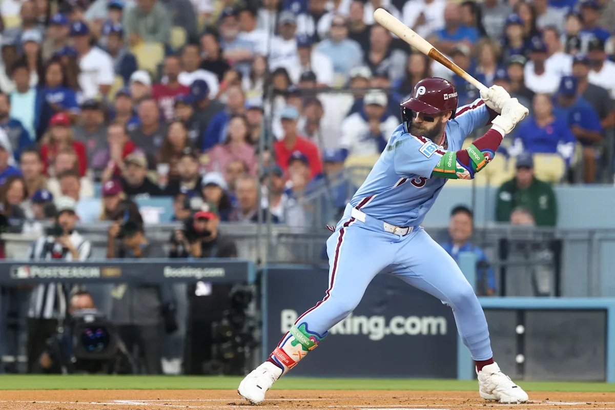 Bryce Harper tiene sólo tres hits en cuatro juegos de playoffs este año. El primera base estrella de los Filis de Filadelfia registró un OPS de .844 en la temporada regular, su más bajo desde 2016, cuando estaba con los Nacionales de Washington.