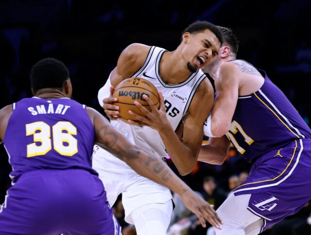 Después de ver a un segundo defensor, o doble equipo puro, en el 29,4% de sus toques contra los Lakers, el máximo de la temporada, Wembanyama ahora ha visto esa capacidad de atención en el 22,6% de sus toques esta temporada. Eso ocupa el tercer lugar, detrás de Giannis Antetokounmpo (27,2%) y Zion Williamson (26,3%), entre 142 jugadores que registraron al menos 300 toques esta temporada. Como punto de referencia de su carrera, Wembanyama vio este nivel de atención en el 14,6 por ciento de sus toques como novato, y ese nivel bajó ligeramente al 14,4 por ciento la temporada pasada antes de ser descontinuado. es un enorme ligero aumento.