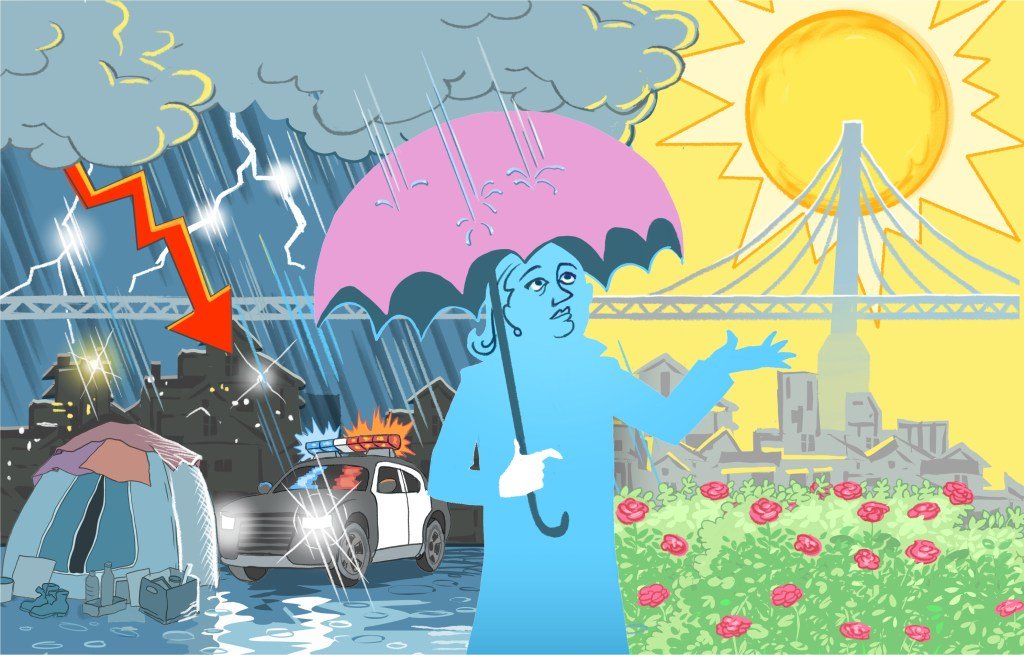 Sin embargo, la encuesta reveló que el 53% pensó que la región se dirige en la dirección equivocada, y casi el 60% dijo que la calidad de vida en la región de la Bahía ha empeorado en los últimos cinco años. Cuando se les preguntó qué problemas plantean un problema grave para la región, las grandes mayorías han acordado que los costos de vivienda (96%), el costo de vida (95%), la falta de vivienda (94%) y las desigualdades de riqueza (80%) son desafíos significativos.