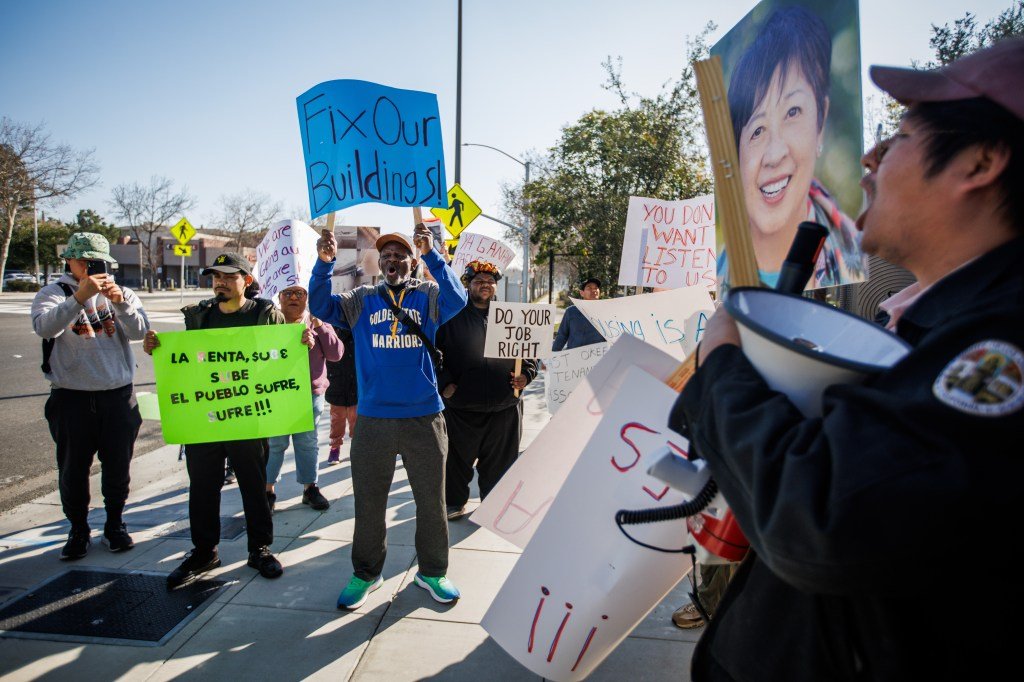 Después de años de quejas en Woodland ParkEn un grupo de edificios de apartamentos con alquiler controlado que constituyen gran parte de las viviendas asequibles de East Palo Alto, la junta de estabilización de alquileres de la ciudad dictaminó el año pasado que el propietario no había mantenido los servicios básicos de vivienda en varios edificios, otorgando reducciones de alquiler a los inquilinos afectados. El propietario, Sand Hill Property Company, apeló la decisión, retrasando el pago y provocando que los inquilinos protestaran frente a las oficinas de la empresa la semana pasada.