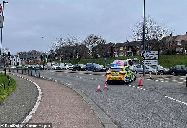 Los servicios de emergencia acudieron al incidente en la A289 Gads Hill alrededor de las 12.10 p.m. mientras los paramédicos atendían al hombre en el lugar, que luego fue declarado muerto.