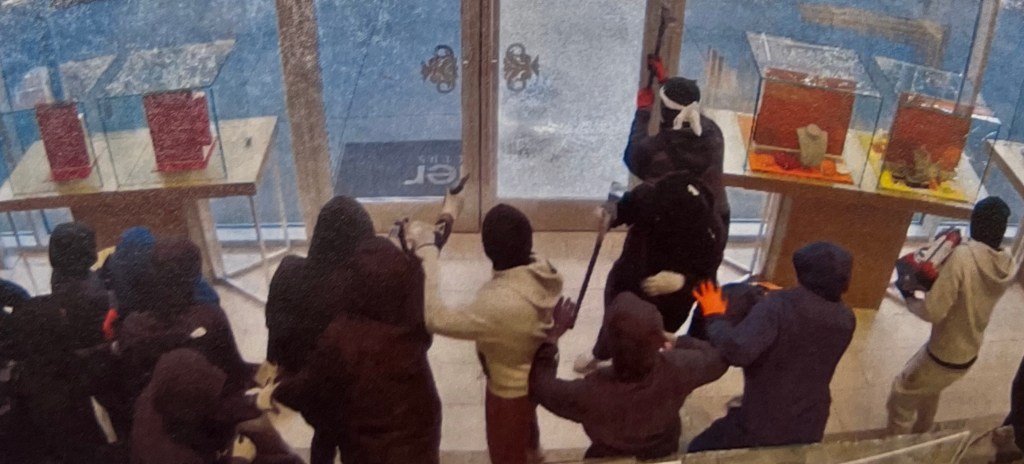 A los observadores puede haberles parecido un caos, pero los fiscales dicen que fue cuidadosamente planeado con medios sofisticados diseñados para obstaculizar la intervención policial. Algunos de los sospechosos recaudaban fondos, otros empuñaban martillos o pistolas. Se reclutaron dos grupos de equipos de fuga para llevar a los ladrones en vehículos sin matrícula a lugares predeterminados, donde los esperaban coches “limpios”, vehículos que no podían vincularse con el lugar del robo.