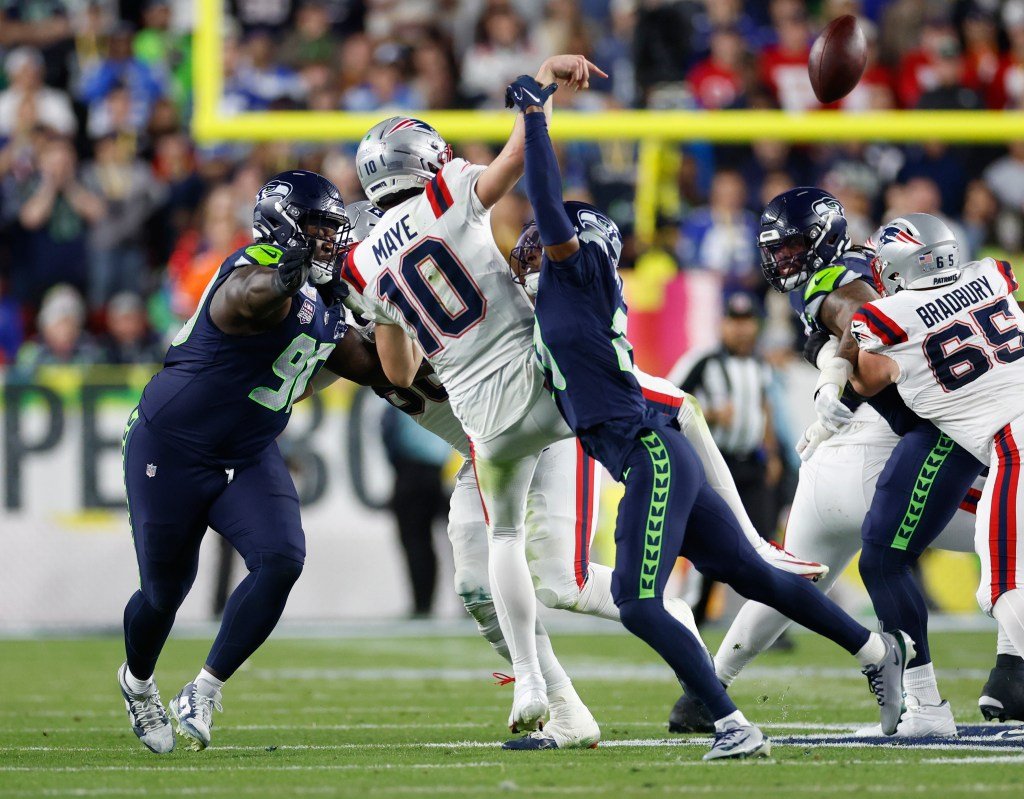 Sin embargo, fue otra pérdida de balón de Maye lo que devolvió el impulso a los Seahawks. Con 8:49 restantes, Maye lanzó un balón profundo de ala y oración al medio del campo, donde Julian Love esperó pacientemente por el flotador y consiguió una buena atrapada.