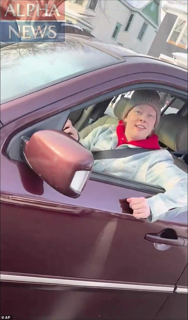 El vídeo muestra un SUV rojo conducido por Renée sentado perpendicularmente y bloqueando parte de la carretera. Toca la bocina varias veces.