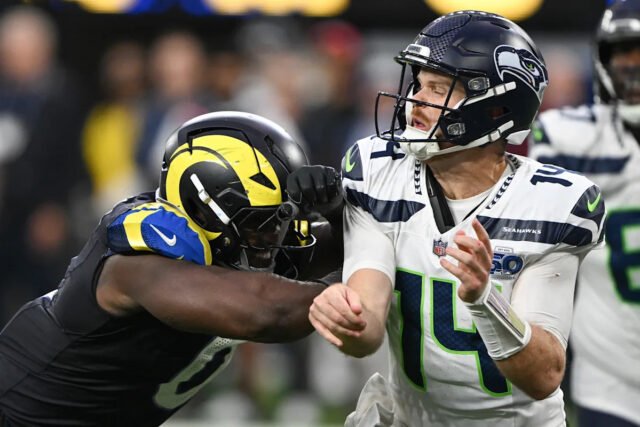 Sam Darnold tuvo un domingo desastroso para los Seattle Seahawks cuando lanzó cuatro intercepciones en una derrota de alto riesgo ante Los Angeles Rams.