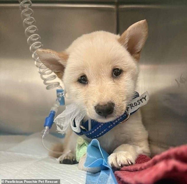 El rescate de mascotas describió previamente la condición de Frosty como “súper crítica”, y agregó que su preocupación iba más allá del parvovirus canino.