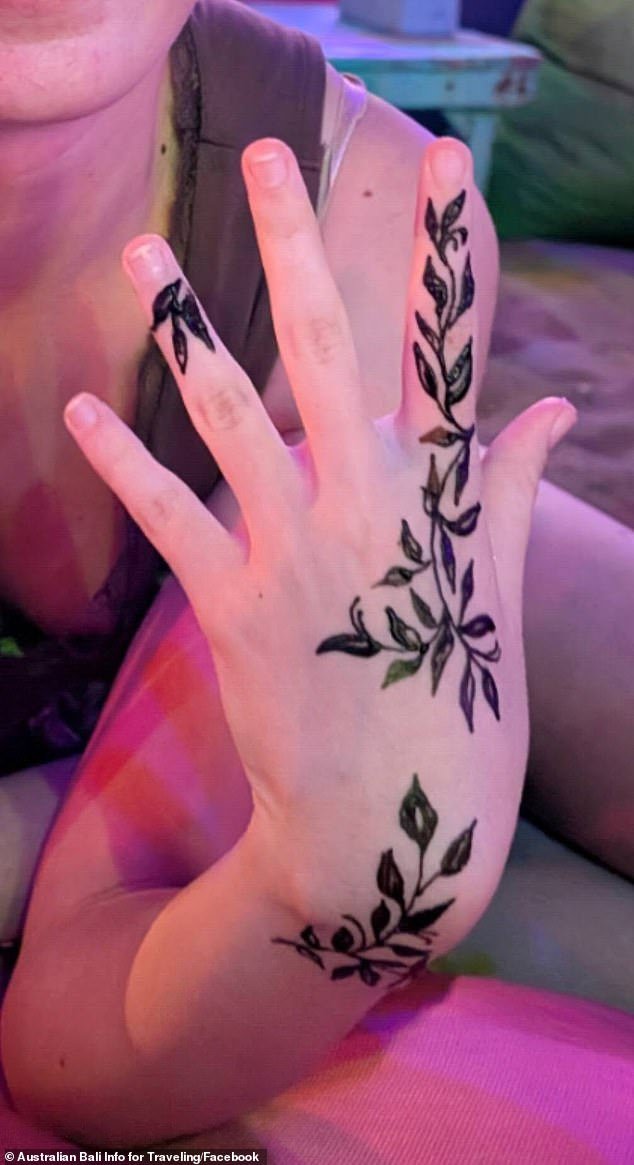 “Mi hija regresó con lo que pensó que era un tatuaje de henna”, escribió la madre en el sitio web. Información sobre el Bali australiano para viajar Página de facebook.