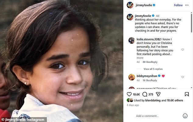 “Para las personas que han preguntado, no puedo compartir ninguna actualización”, escribió Fowlie el 24 de abril. “Gracias por consultarnos y por sus oraciones”.