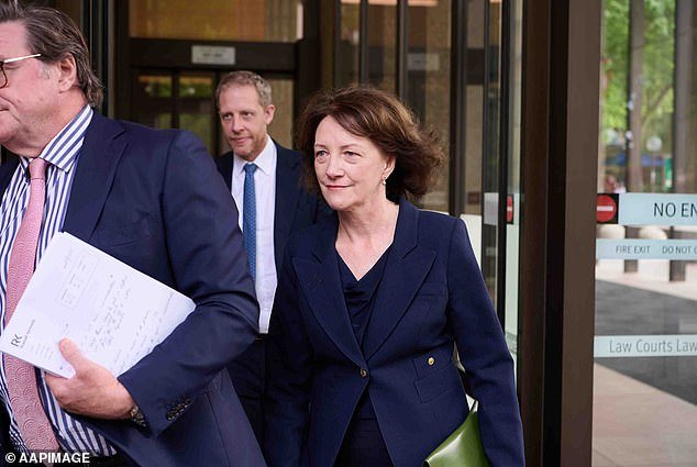 Fiona Brown demandará al gobierno federal por acusaciones de que no la protegió tras las acusaciones de Brittany Higgins. Se la fotografía saliendo del tribunal de Sydney el lunes.