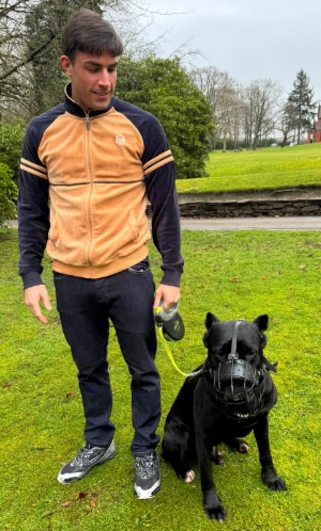 La estrella de Love Island, Jack Fincham, y su perro negro Cane Corso que mordieron a dos personas