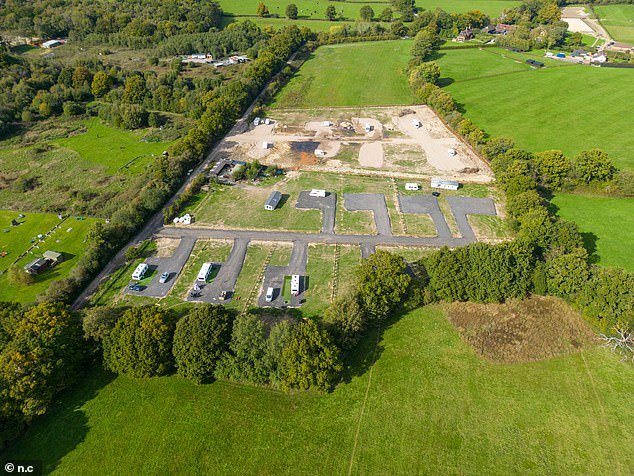 Cuando el Daily Mail visitó la ubicación, los viajeros parecían instalar un gran parque de caravanas, rasgando la tierra y colocando asfalto duro con más de una docena de tierra instalada.