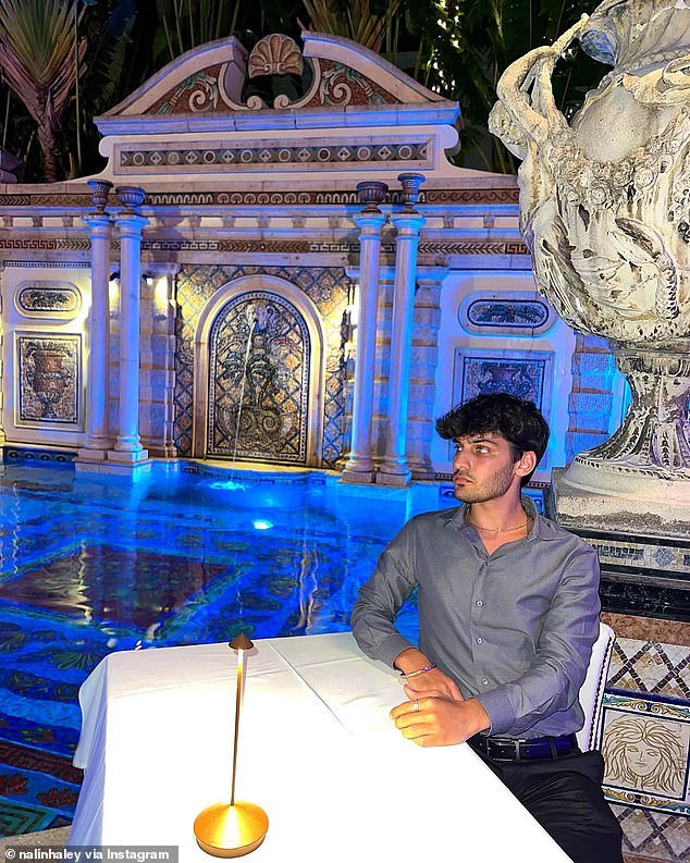 Nalin Haley posa en la Mansión Versace en Miami, vista en una publicación que hizo en Instagram en julio de 2022