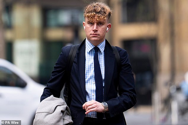 Lewis Rollins, de 28 años, que era agente del Comando Central Oeste de la Met, utilizó a mujeres que conoció en aplicaciones de citas para financiar sus hábitos de apuestas fuera de control (aparece en la foto afuera del Tribunal de la Corona de Southwark)