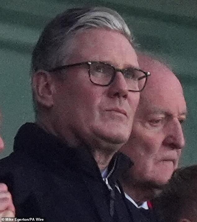 En medio del furor, Sir Keir fue visto en las gradas del Emirates Stadium viendo a su equipo de fútbol, el Arsenal, perder ayer 3-2 en casa ante el Manchester United.