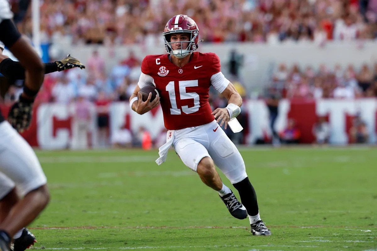 El Alabama QB Ty Simpson hizo muchos juegos con las piernas en la victoria de Crimson Tide sobre Vanderbilt. (Imágenes Butch en Dill / Getty)