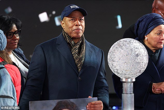 En su acto final como alcalde de Nueva York, Eric Adams pulsó el botón para iniciar la cuenta atrás en Times Square.