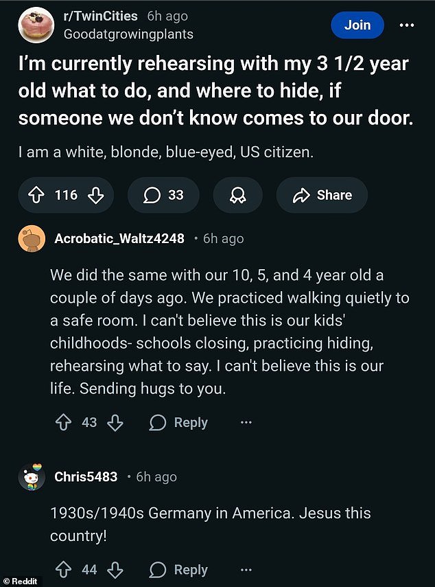 Las familias recurrieron a Reddit y publicaron que estaban “ensayando qué hacer y dónde esconderse” si ICE se acercaba a su casa.