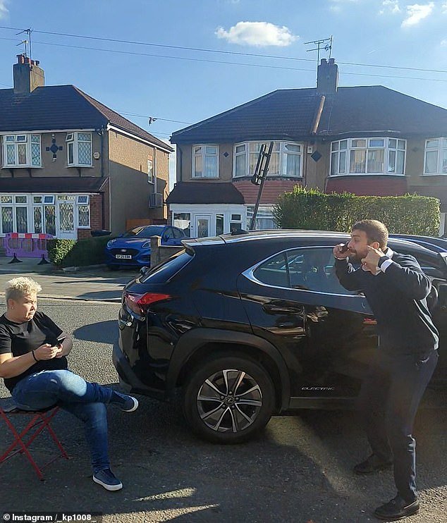Las imágenes del argumento muestran a la mujer sentada en una silla plegable en medio de un estacionamiento en Perivale, en Londres el martes.