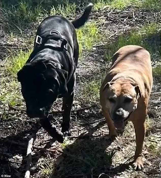 Marcus Norton estaba paseando al cachorro Mastiff, Chief (izquierda), y a la anciana Staffordshire terrier, Molly (derecha), en Pinjarra, al sur de Perth, cuando los dos perros supuestamente fueron apuñalados.