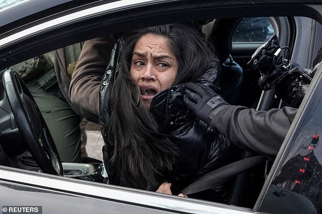 Aliya Rahman, de 42 años, supuestamente bloqueó a los agentes de ICE que trabajaban para capturar inmigrantes ilegales en Minneapolis el martes cuando los agentes la sacaron de su Ford Fusion negro mientras se aferraba desesperadamente a la puerta del lado del conductor.