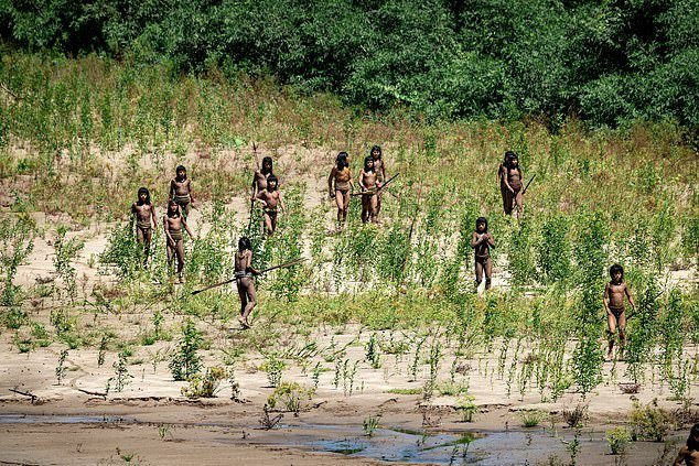 Han aparecido imágenes e imágenes increíbles, nunca antes vistas, de la tribu aislada más grande del mundo, con cazadores amazónicos empuñando lanzas interactuando con exploradores occidentales.