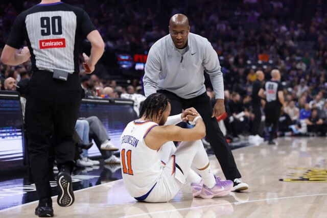 El armador de los New York Knicks, Jalen Brunson, abandonó el partido del miércoles contra los Sacramento Kings a principios del primer cuarto después de torcerse el tobillo derecho, perdiéndose el resto de lo que se convertiría en una victoria de los Kings por 112-101.