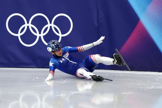 Cuatro años después de su angustia en Beijing, la patinadora de velocidad en pista corta Kristen Santos-Griswold volvió a tener problemas en los Juegos Olímpicos, cayendo (o siendo arrojada al hielo) varias veces durante una noche finalmente frustrante que la dejó fuera de la carrera por la medalla final.