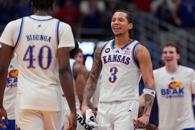 “Pensé que la intensidad fue grandiosa. Esperaba que mostráramos algo de dureza”, dijo el entrenador de Kansas, Bill Self. “Aparte de esos siete minutos para comenzar la segunda mitad, jugamos muy bien todo el tiempo. Lo compartimos, fuimos agresivos y nuestra defensa estuvo por encima de lo que era”.