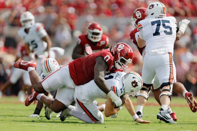 La defensa de Oklahoma desestimó al ex Jackson Arnold de QB Jackson 10 veces en una victoria 24-17 contra Auburn N ° 22.