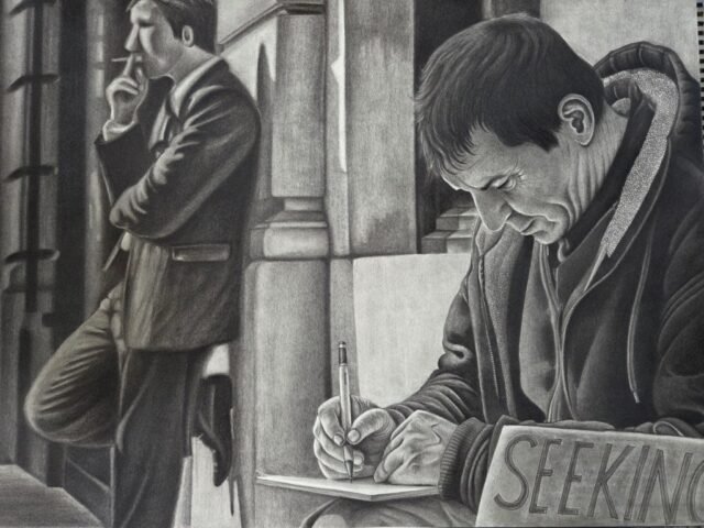 Los detallados dibujos en grafito de Saikat Choudhury honran las conexiones entre jóvenes y mayores, conectan tradiciones culturales y también reconocen la disparidad de pertenencia. Como miembro de la Liga de Bellas Artes de Cupertino, Choudhury ofrece su tiempo y creatividad como voluntario para ayudar a las personas a conectarse y crecer a través del arte.