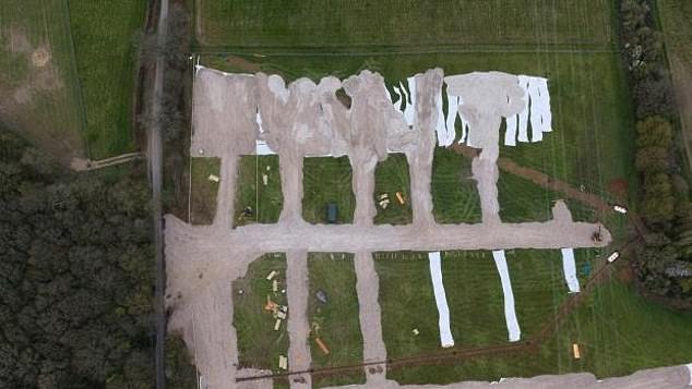 Los aldeanos se enfurecieron después de que un grupo que se creía eran viajeros irrumpió en un campo cerca de Friendless Lane en Hertfordshire y comenzó a colocar concreto (en la foto).