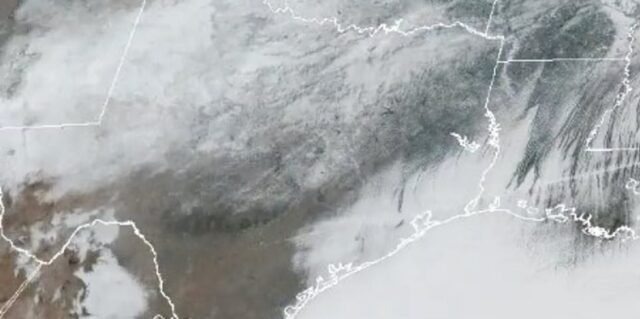 “El bucle de satélite es visible esta mañana. Las sombras blancas que no se mueven en el bucle representan el hielo en el suelo de nuestra zona”, dijo NWS en X.