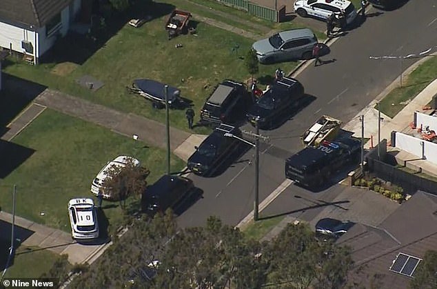 El viernes por la mañana, los oficiales fuertemente armados invadieron Wollongbar Avenue en Panania y rodearon una casa, donde un hombre armado estaría encerrado por dentro.