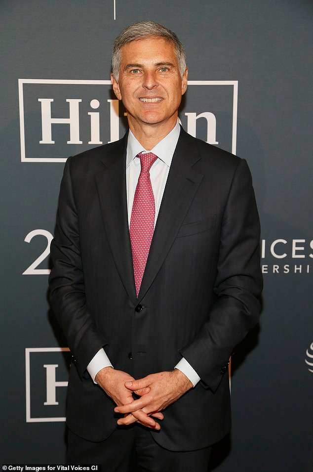 Manifestantes anti-ICE llegaron a la mansión de Virginia propiedad del director ejecutivo de Hilton Hotels, Christopher Nassetta (en la foto), para manifestarse contra la cadena de hoteles que alberga a agentes de inmigración.