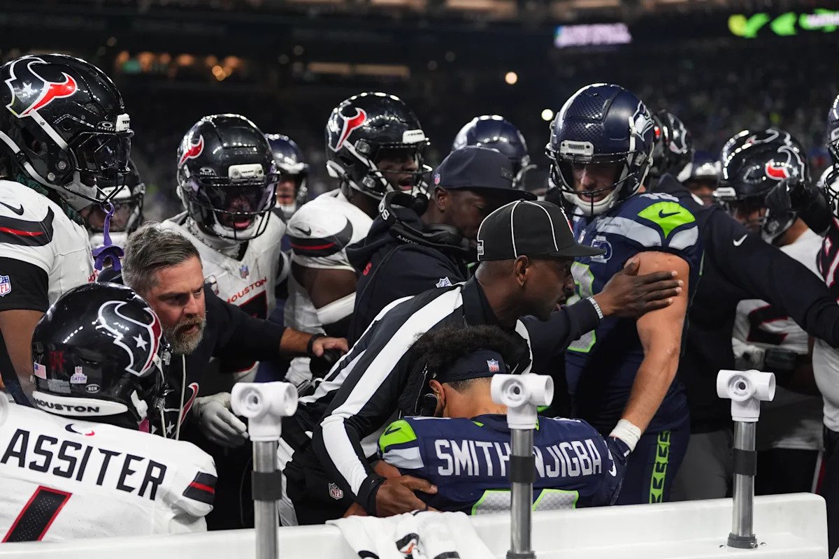 En respuesta, Smith-Njigba empujó a Stingley fuera de los límites en la banca de Houston, lo que provocó que varios jugadores de los Texans rodearan al receptor de los Seahawks y lo empujaran a la banca.