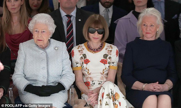 La vestidora de la Reina, Angela Kelly (izquierda), recordó cómo Isabel II “bailó y cantó” al son de ABBA mientras rindía un conmovedor homenaje a “mi mejor amigo”. La Sra. Kelly aparece aquí con Elizabeth (izquierda) y la editora jefe de Vogue, Anna Wintour, durante un desfile en la Semana de la Moda de Londres en 2018.